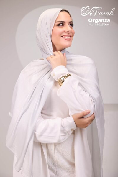 طرحة أورجانزا الراقية، مثالية للمناسبات الخاصة والسهرات. خامة خفيفة وشبه شفافة تمنحك مظهرا فاخرا. تتميز بمقاس كبير (190*70 سم) يسهل لفه وتشكيله بأناقة مميزة.