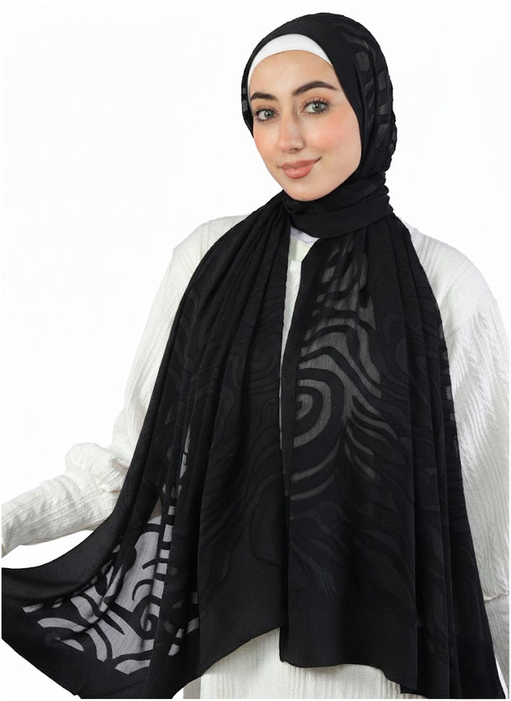 طرحة ديفوريه جاكار تتميز بنسيج شفاف ولامع مع نقشة جاكار التايجر البارزة تمنح إطلالتك لمسة أناقة سواريه خفيفة مثالية للمناسبات مقاس (190*70 سم )